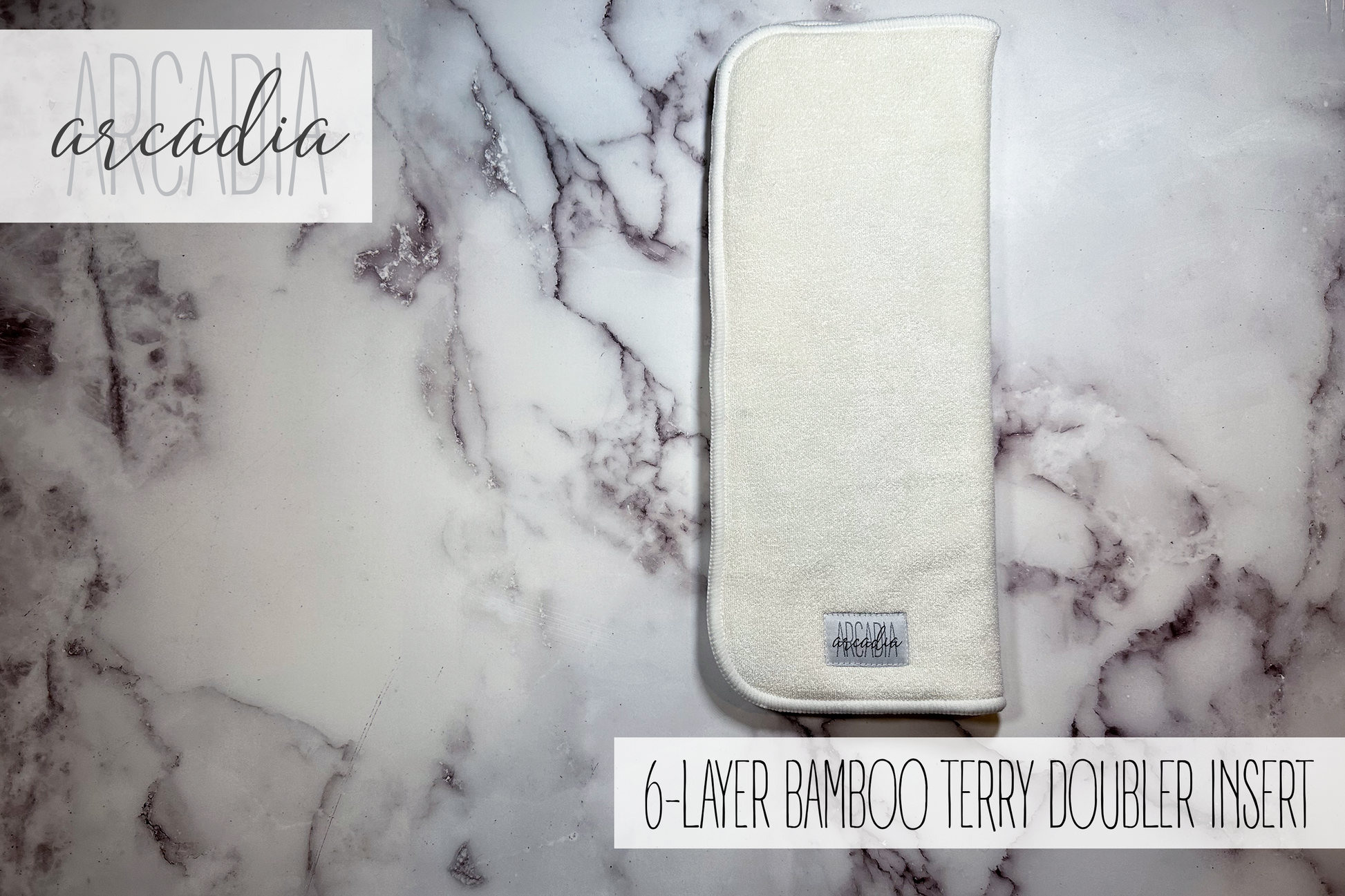 The doubler is twice as wide as our standard 6 layer bamboo terry insert, when it is folded in half it is double the absorbency. It's like using two inserts that are permanently buddied up. This level of absorbency is generally sufficient for heavy wetters. Car rides, naps, and even overnights for some babies are some other applications.