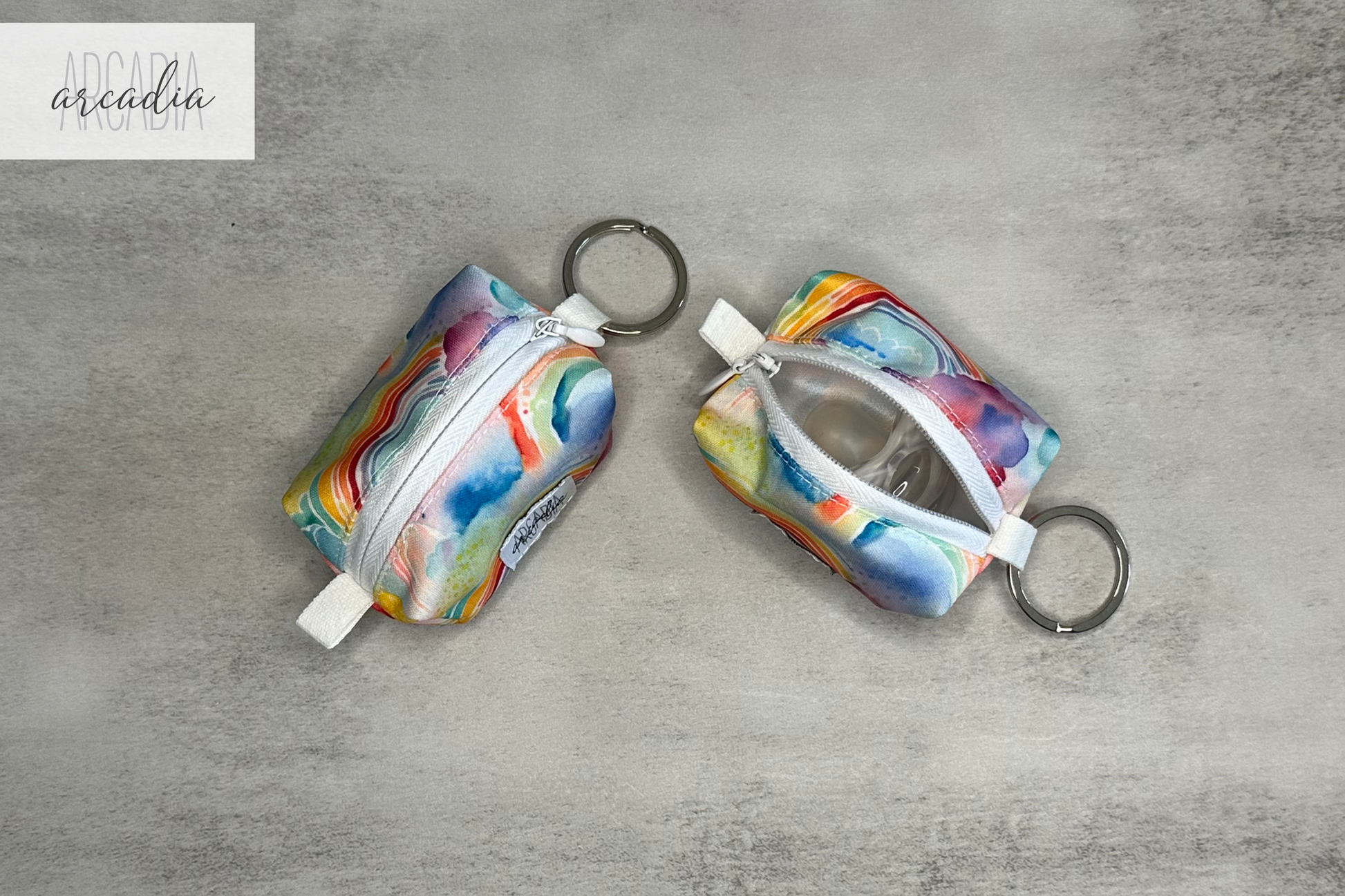 These pods are a great place to store itty bitty items like chapstick, cash, change, crystals, pacifiers, menstrual cups etc. Pop it on your diaper bag or key ring using the key ring, or stick it in your pocket.